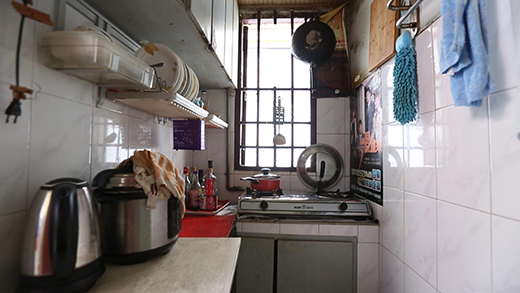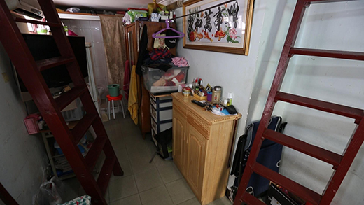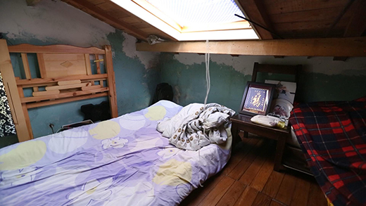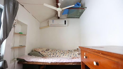 小黃父母的臥室在最低處的閣樓上,層高十分有限,最高的地方也只有1.5米,對(duì)于他們而言,在臥室里起身站立都是一種奢望。小黃的臥室雖然層高足夠,但是采光極差,白天都需要開(kāi)燈。房間內(nèi)幾乎沒(méi)有儲(chǔ)物空間,僅有一張嵌在墻上的單人床,身高178cm的他連睡覺(jué)都無(wú)法伸直。