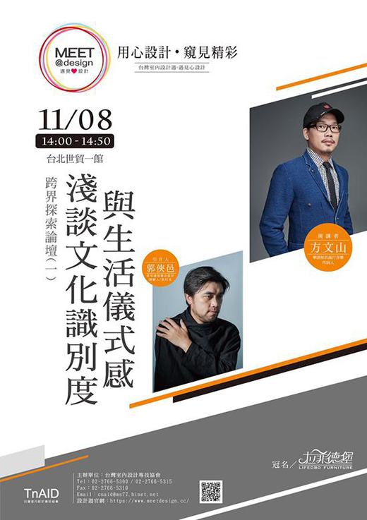 由臺灣室協新銳設計師群,云司設計周言叡、廖笠庭總監擔任總策展人進行整體規劃,并邀請其他12位設計師,包含袁世賢設計師、周亦伶設計師、徐文芝設計師、高立洋設計師、謝張志升設計師、虞國綸設計師、廖月凰設計師、李威震設計師、李季遠設計師、張偉正設計師、彭新智(奧斯)設計師、龐甄禧設計師共同擔任協同策展人,攜手打造出獨一無二且前所未見的嶄新空間面貌,絕對會讓來到現場參與活動的嘉賓們都留下深刻印象。