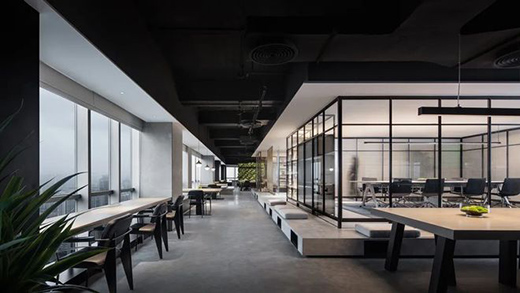 樣式各異的家具擺放打破常規制式如園林般疏密得宜、曲折盡致,既有大型辦公桌,也有半包一體式桌椅、水晶盒子般的玻璃會議室……巧妙的區隔讓空間既可以獨立,也可以融合,并讓每個人都可以享受到窗外的陽光,將共享理念發揮到極致。