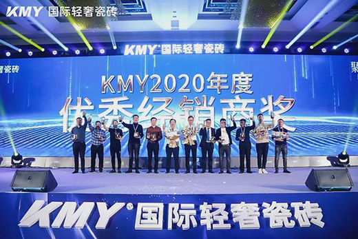 盡管2020正值市場轉型期,但依然阻礙不了KMY經銷商積極奮進、砥礪前行的決心。KMY品牌答謝晚宴上,KMY國際輕奢瓷磚對“年度優秀經銷商”和“年度卓越進步經銷商”進行表彰加冕,期待2021再創輝煌。