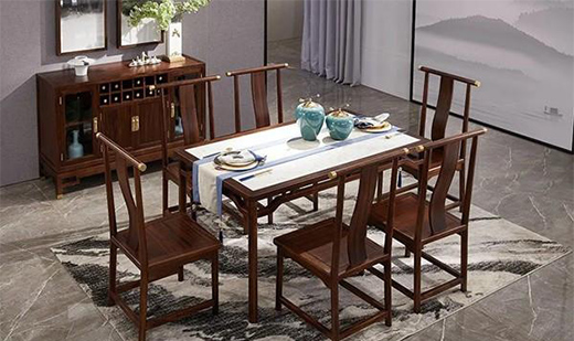 中國人講究團團圓圓,家和萬事興。餐桌是血脈的延續也是禮儀的課堂。大體框架選用烏金實木,桌面別具用心選擇大理石,古今相遇,即是長輩與晚輩的相處,如此融洽又各具特色。