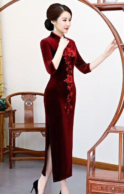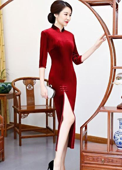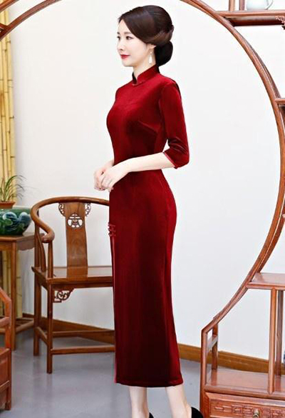 在介紹了上一期的蕾絲旗袍之后,從這個時期開始我就推薦兩種天鵝絨旗袍,天鵝絨質地的旗袍很適合秋冬,讓大家滿意,希望大家看完后積極發表意見,首先介紹的是天鵝絨長裙,這是紅葡萄酒旗袍,旗袍的主色是純色,是紅葡萄酒,一般來說,紅色旗袍并不是那么稀疏,接受這個顏色的年齡跨度比較大,顏色的接受度和認可度高的顏色。
