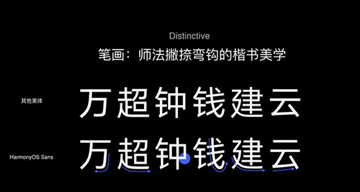 在筆畫上,華為認為師法撇捺彎鉤的楷書美感,比較明顯的是長的曲線、弧線的筆畫,進行了曲線優美的調整,從基本的筆畫里面提取這些進行改造。