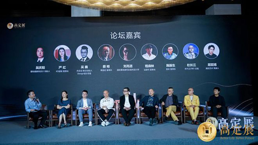 活動現場,由廣州易構易家具設計有限公司創始人吳慶陽主持的《高定與設計》論壇對話環節,邀請了八位分享嘉賓——KD定制董事長嚴紅、共合設聯合創始人/Design設計總監吳巍、博洛尼董事長蔡明、國際著名建筑及室內設計師劉亮週、法洛可董事長程森林、藍谷董事長施振生、卓木王1983總裁杜長江、潮流藝術策展人屈臣旭,分別代表高定TOP10+品牌、行業知名設計師、設計與藝術界大咖、潮流藝術策展人、知名家具設計機構和裝飾設計機構,從不同專業角度出發,共同探討關于高定設計與潮流藝術融合發展的多種可能性。